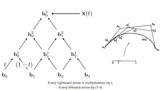 b^n(t) = b_0(1 - t)^3 + b_1 3t(1 - t)^2 + b_2 3t^2(1 - t) + b_3 t^3
